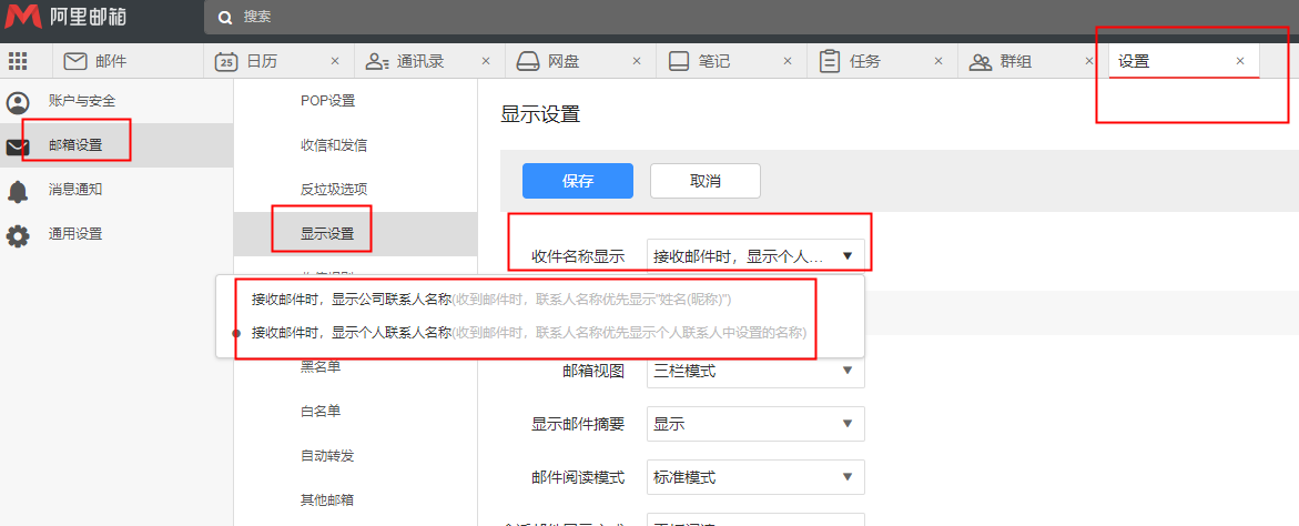 【苏州阿里邮箱】如何设置接收邮件时显示名?