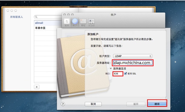 mac maill本地通讯录配置(因苹果官方系统bug,当前只支持macOS10.11以下版本,不包括10.11)